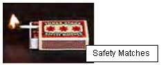 NOT “strike anywhere” matches, as these may start on fire just from accidental dropping)
