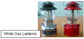Lamps/lanterns that use propane or Coleman fuel/white gas.